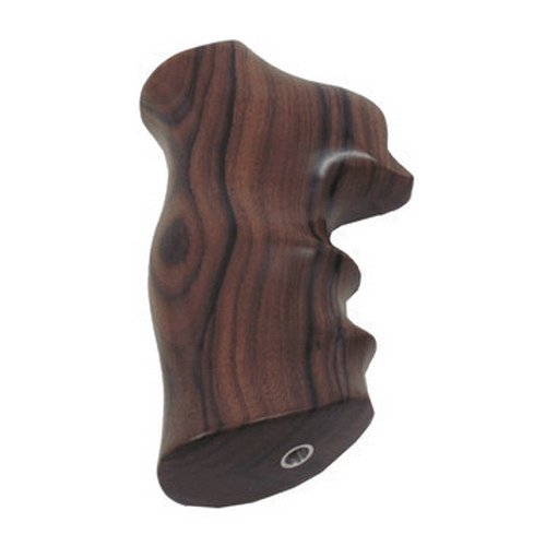 Fits: Ruger GP100 - Super Redhawk Hogue fancy hardwood grips are in a class of their own, and are acclaimed by many as the finest handgun stocks available. All Hogue hardwood grips are precision inlet on modern computerized machinery (CNC), then hand finished on actual factory frames, assuring a proper fit. Finally, they are hand polished to a non-slippery sheen using natural Carnauba wax which will not crack and peel like cheap, sprayed-on finishes. Hogue wood grips are made from Pau Ferro wood. Looks like dark walnut.