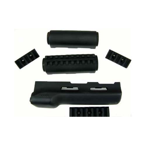 This 2-Piece OverMolded Handguard for the AK-47 or AK-74 is made from rubber-covered fiberglass which offers the ultimate combination of comfort and durability. Modular design includes both railed and smooth top cover as well as 3 short sections of picatinny rail that can be attached to the sides and bottom of the lower portion for accessories. Complete set allows a truly customizable handguard Specifications: - Fits: AK-47/AK-74 Standard Chinese and Russian - Color: Black