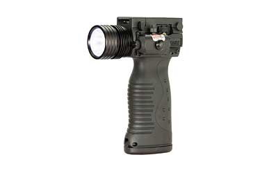 The Tactical Defense Light is a versatile and powerful defensive light and strobe that emits in excess of 450 lumen* of light. Handheld or easily mounted to an accessory rail, the Tactical Defense Light also features a fixed laser aiming module and a built-in power receptacle. The power receptacle can drive a variety of optional interchangeable digital accessories. The grip provides extra stability when mounted on a rifle. Note: Actual product may differ from pictured. Features: - 450 Lumen* LED light. 3 function modes – steady light, strobe light, laser (with light or independent). Steady on/off & momentary on/off operation. Quick release rail attachment. (4) AA batteries.